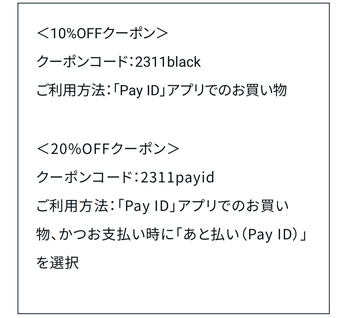 クーポンコード:2311payid