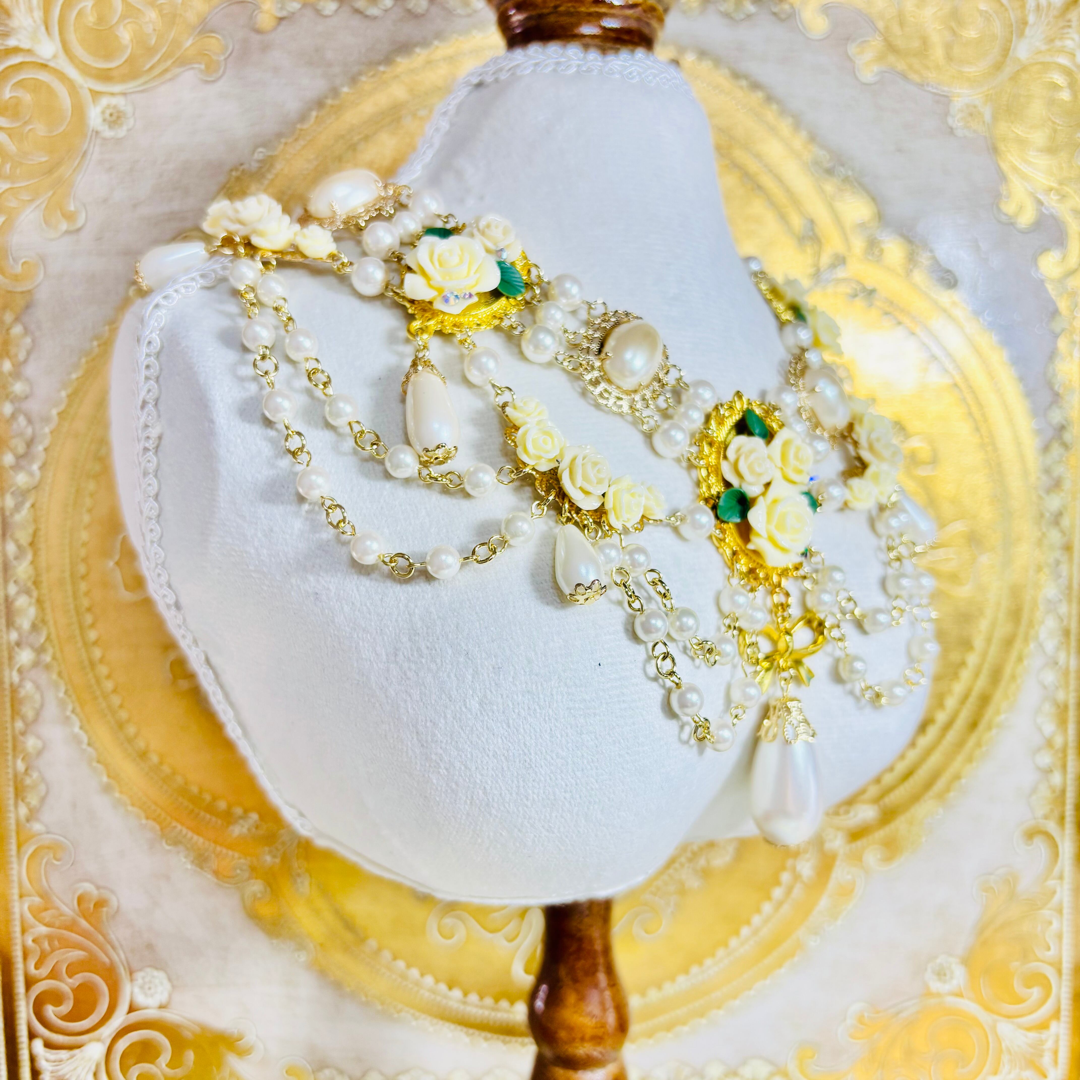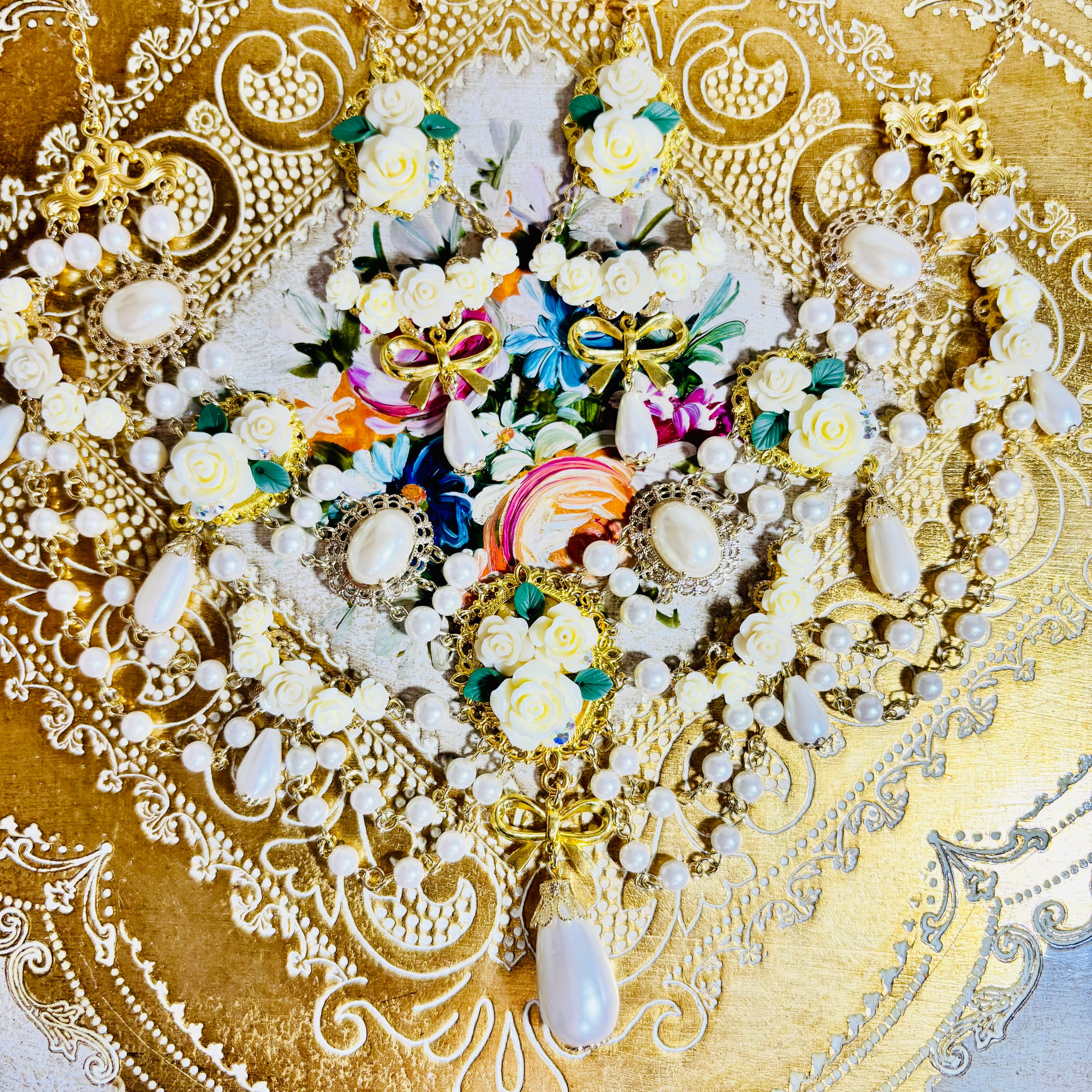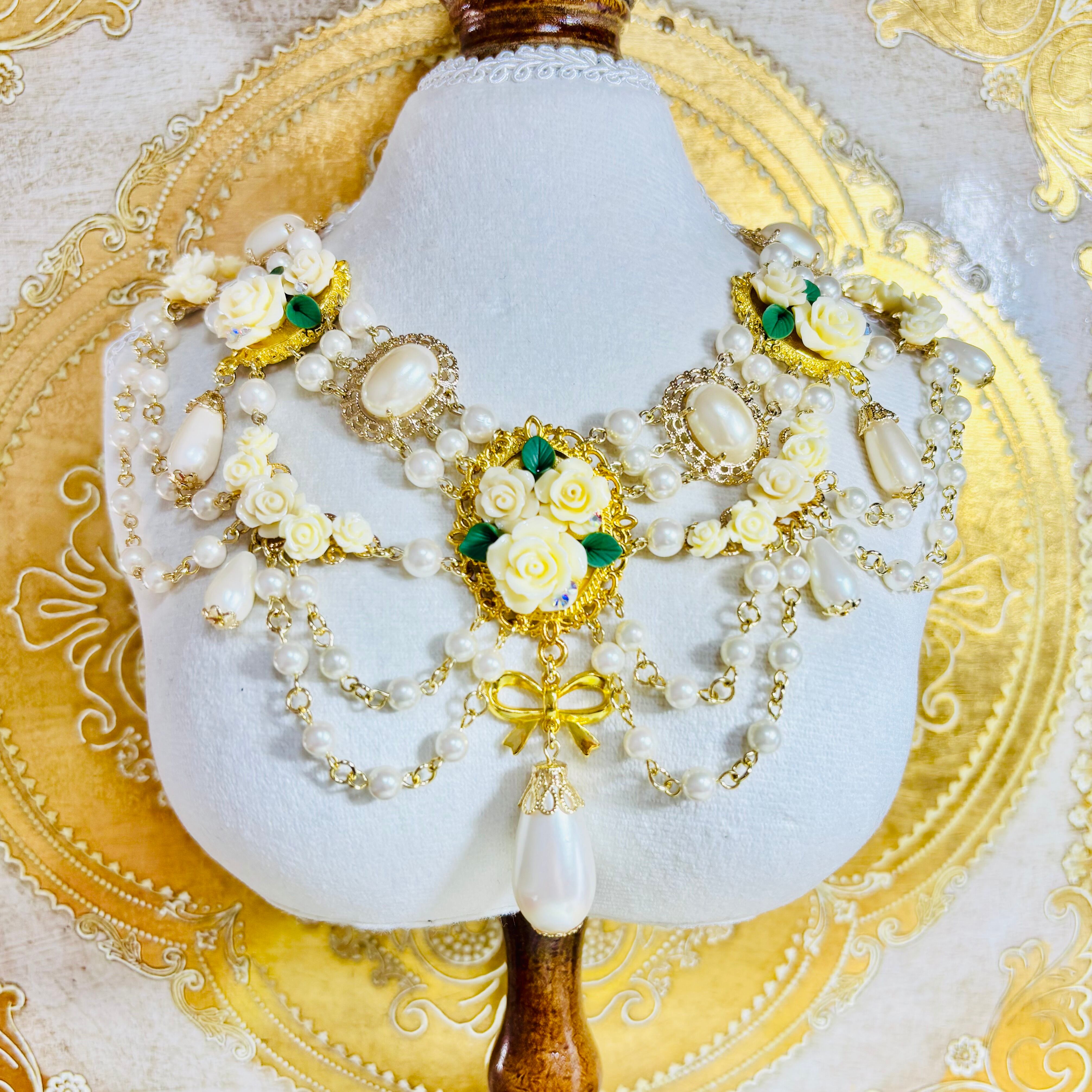 5種類の薔薇パーツと6種類のパールを組み合わせた華やかなネックレスです