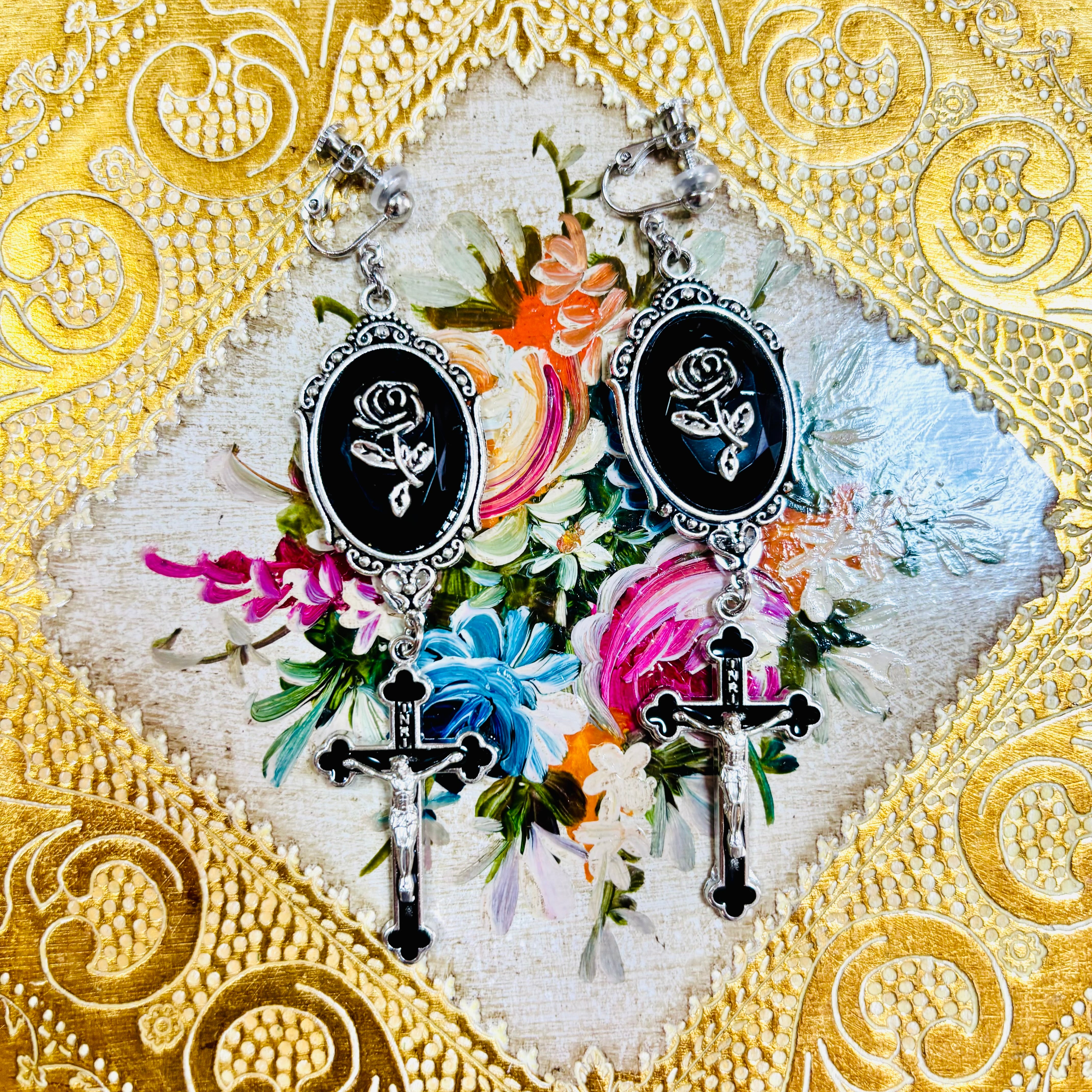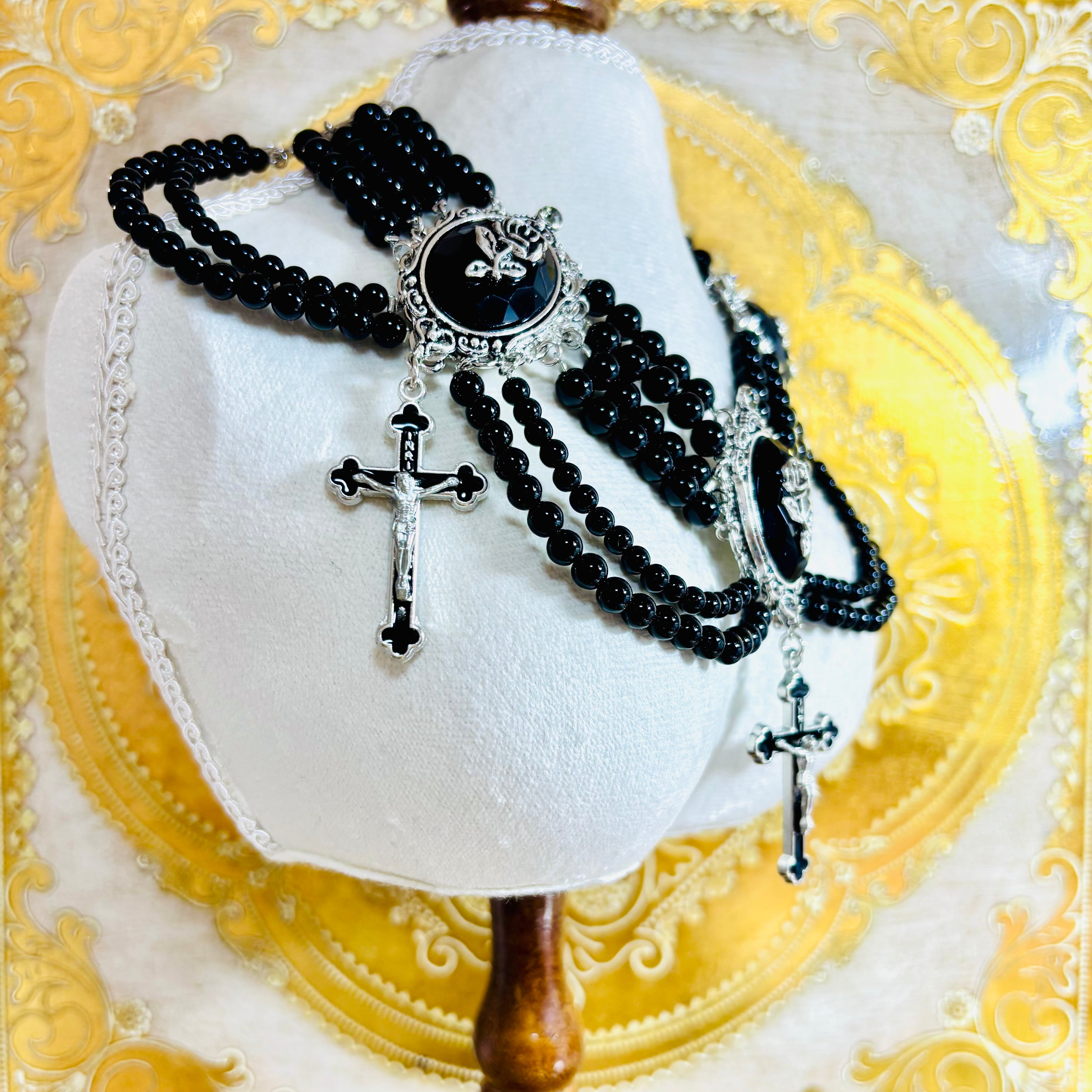 パールレディより一回り小さく軽いパールレディライトを十字架と薔薇のカボションで仕上げました