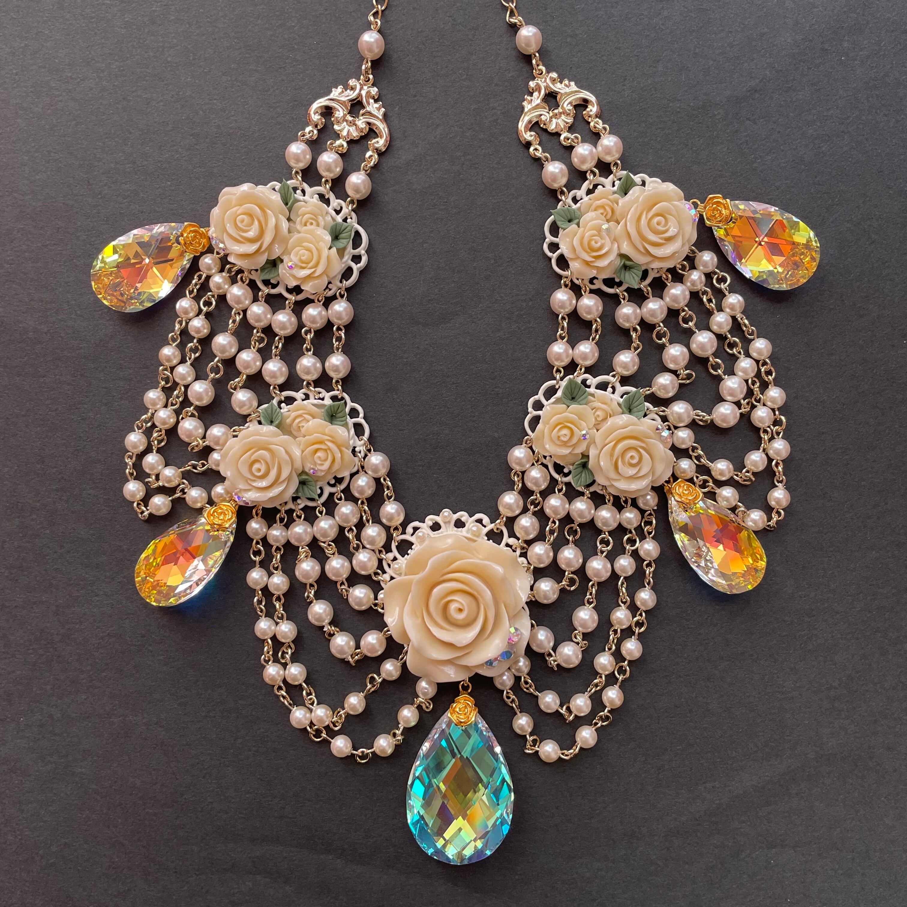 ウェディング ブライダル 披露宴 結婚式 パーティー 社交ダンス ダンス コンサート 舞台 衣装 ドレス プレゼント アクセサリー ハンドメイド ネックレス チョーカー エレガント 上品 パール スワロフスキー