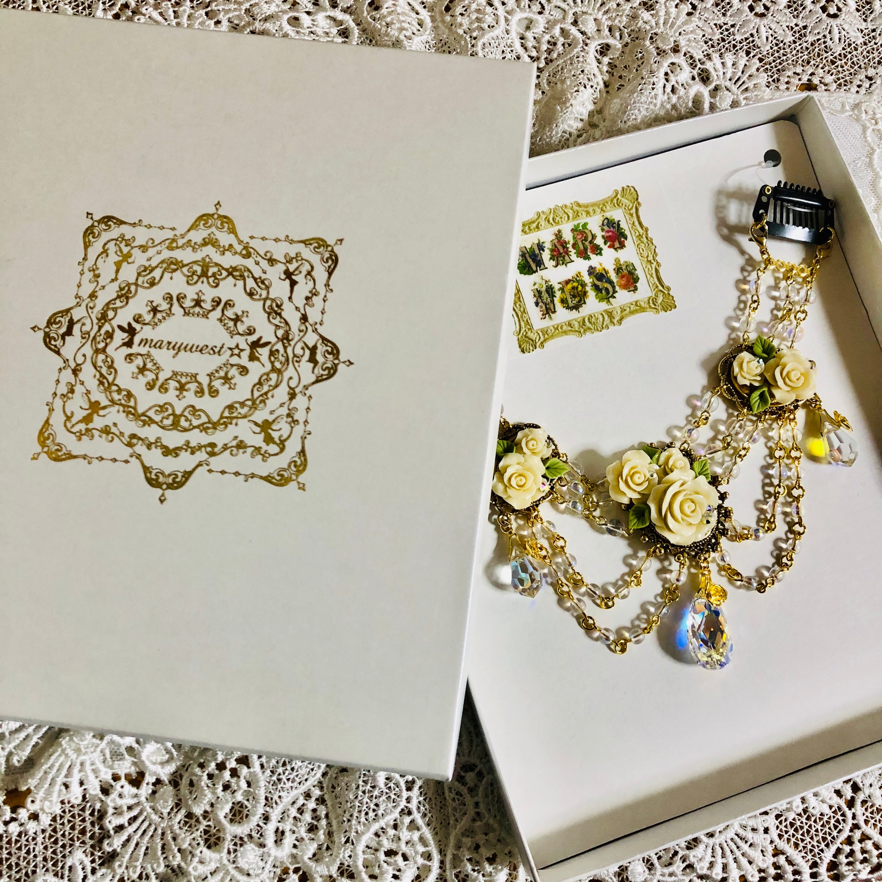 クイーンローズネックレスやクイーンローズブレスレットと重ね付けするとより華やかになります。