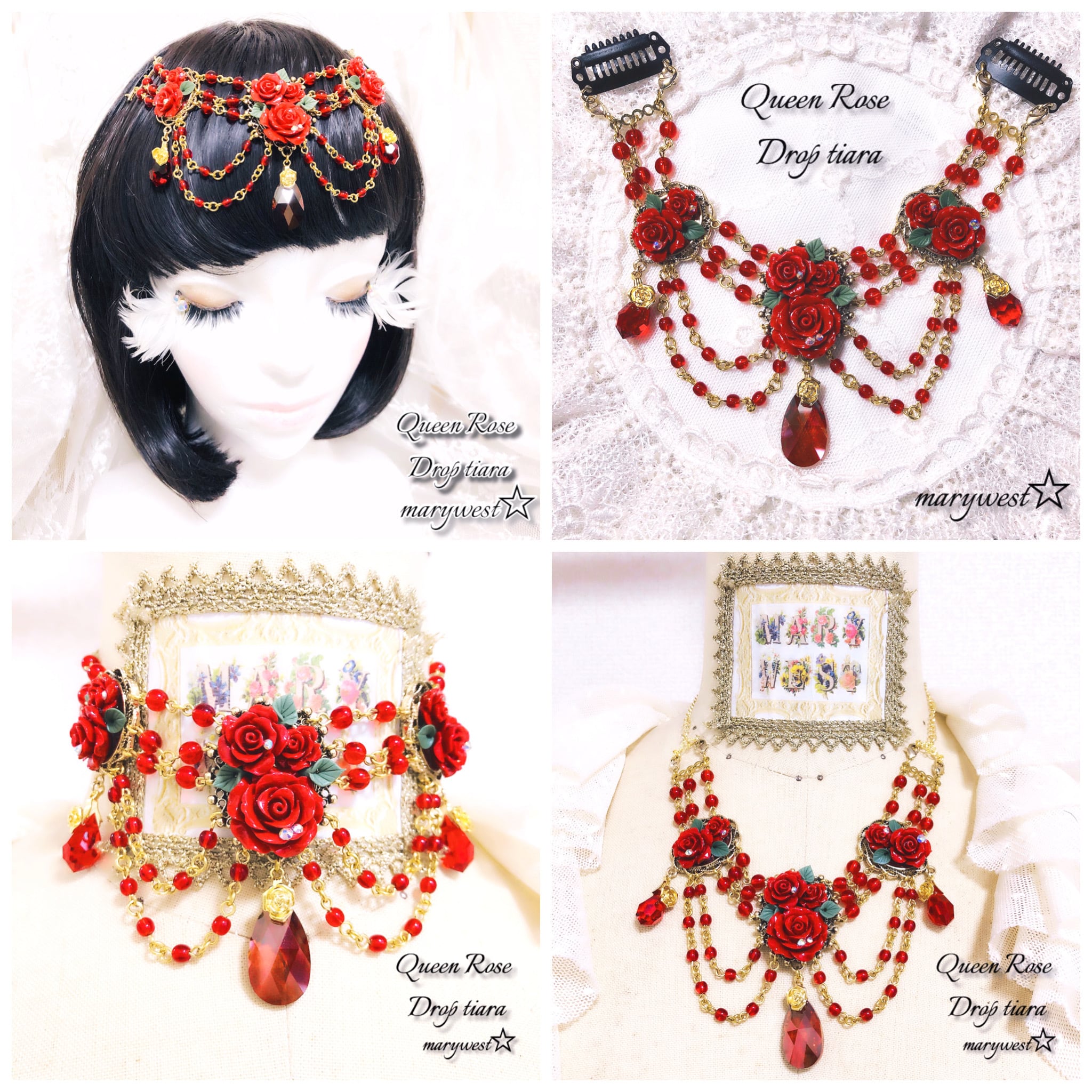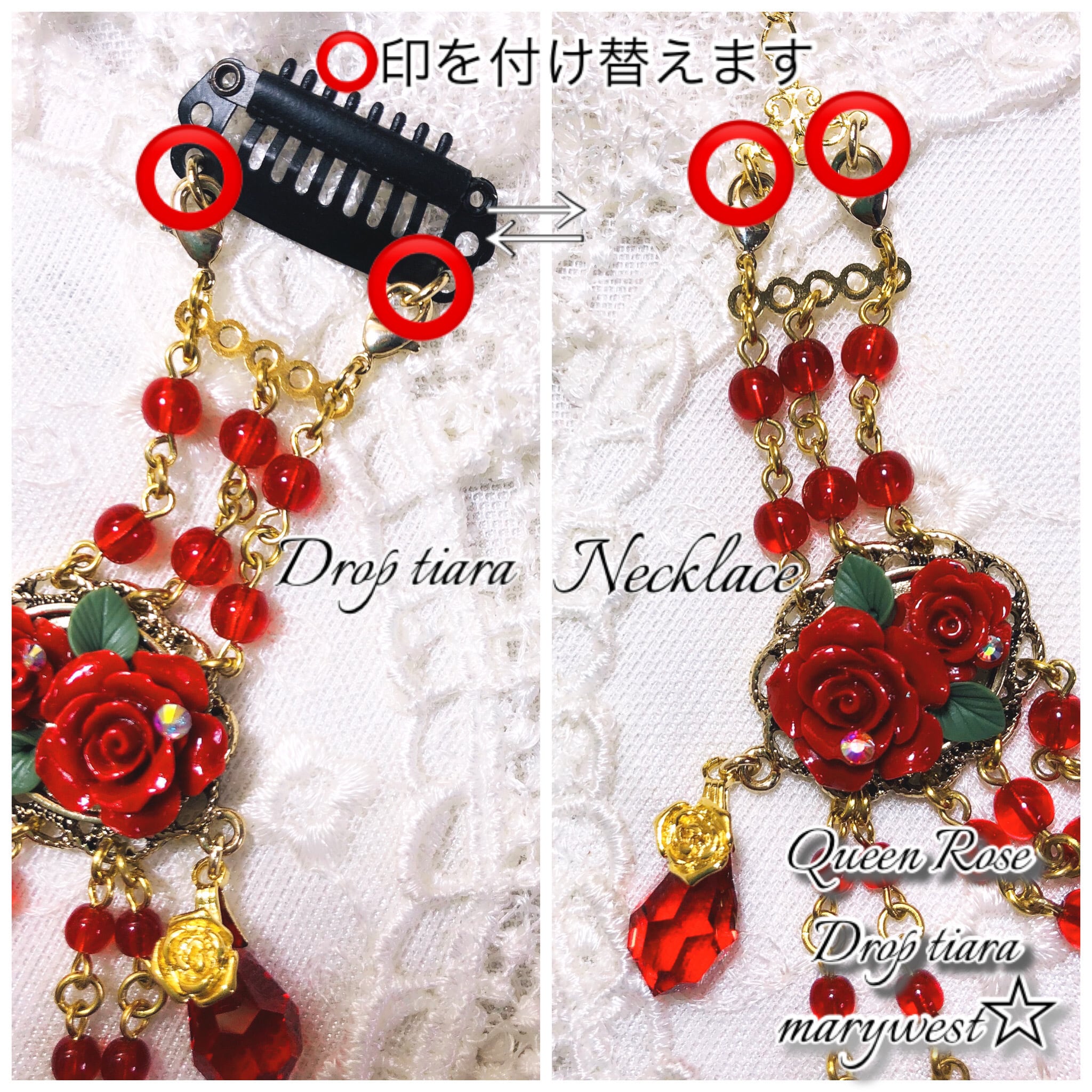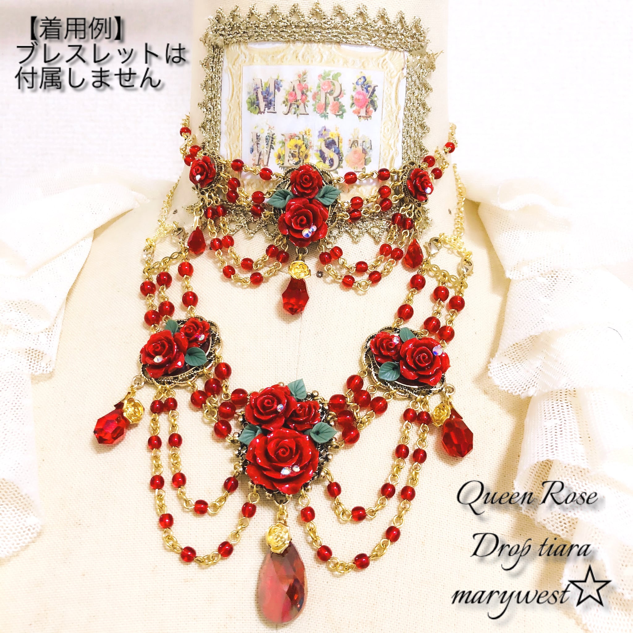 クイーンローズネックレスやクイーンローズブレスレットと重ね付けするとより華やかになります。