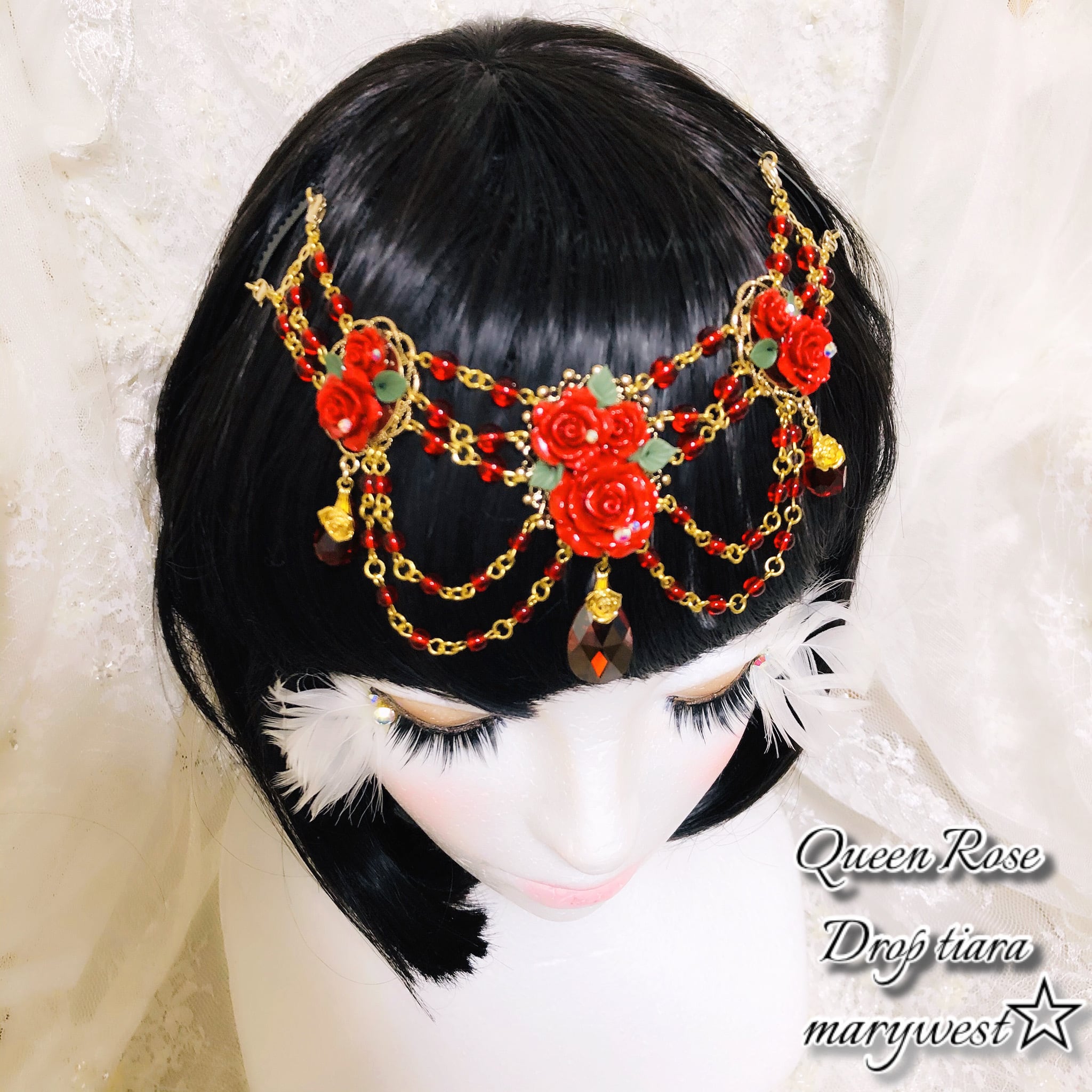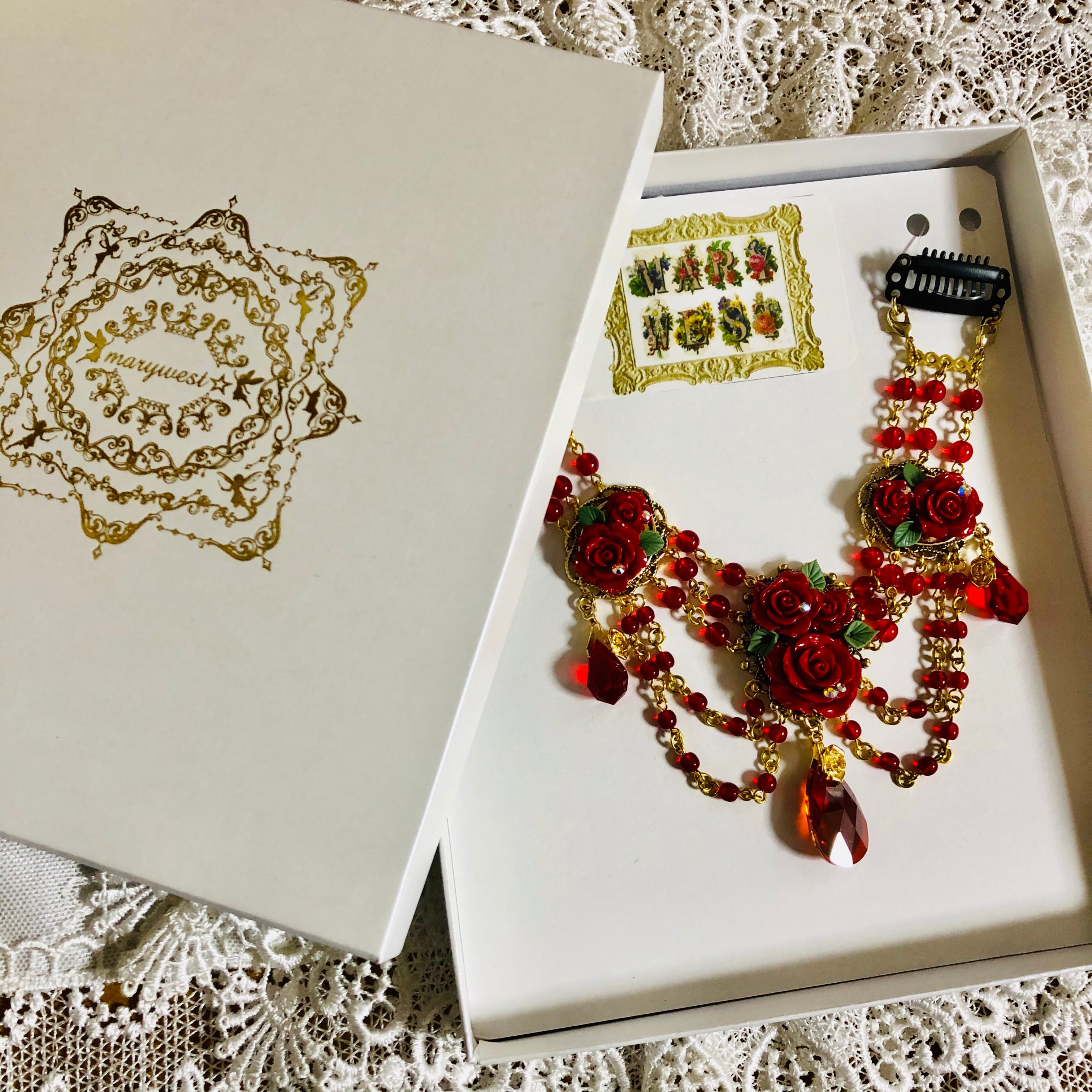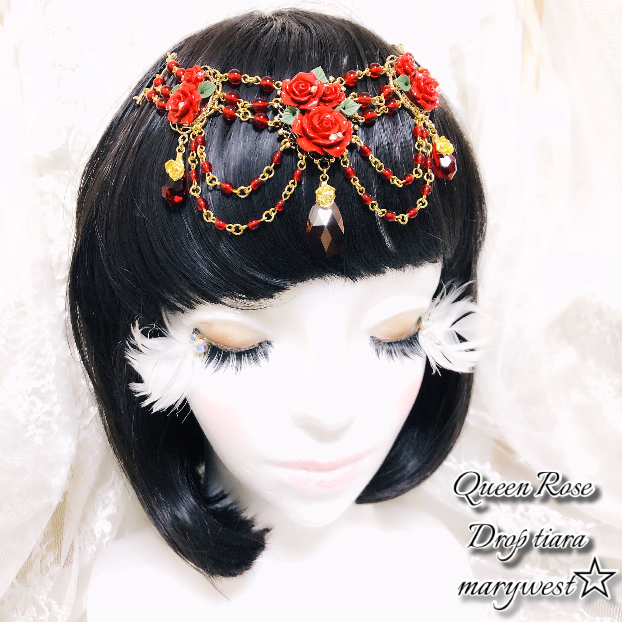 クイーンローズネックレスやクイーンローズブレスレットと重ね付けするとより華やかになります。