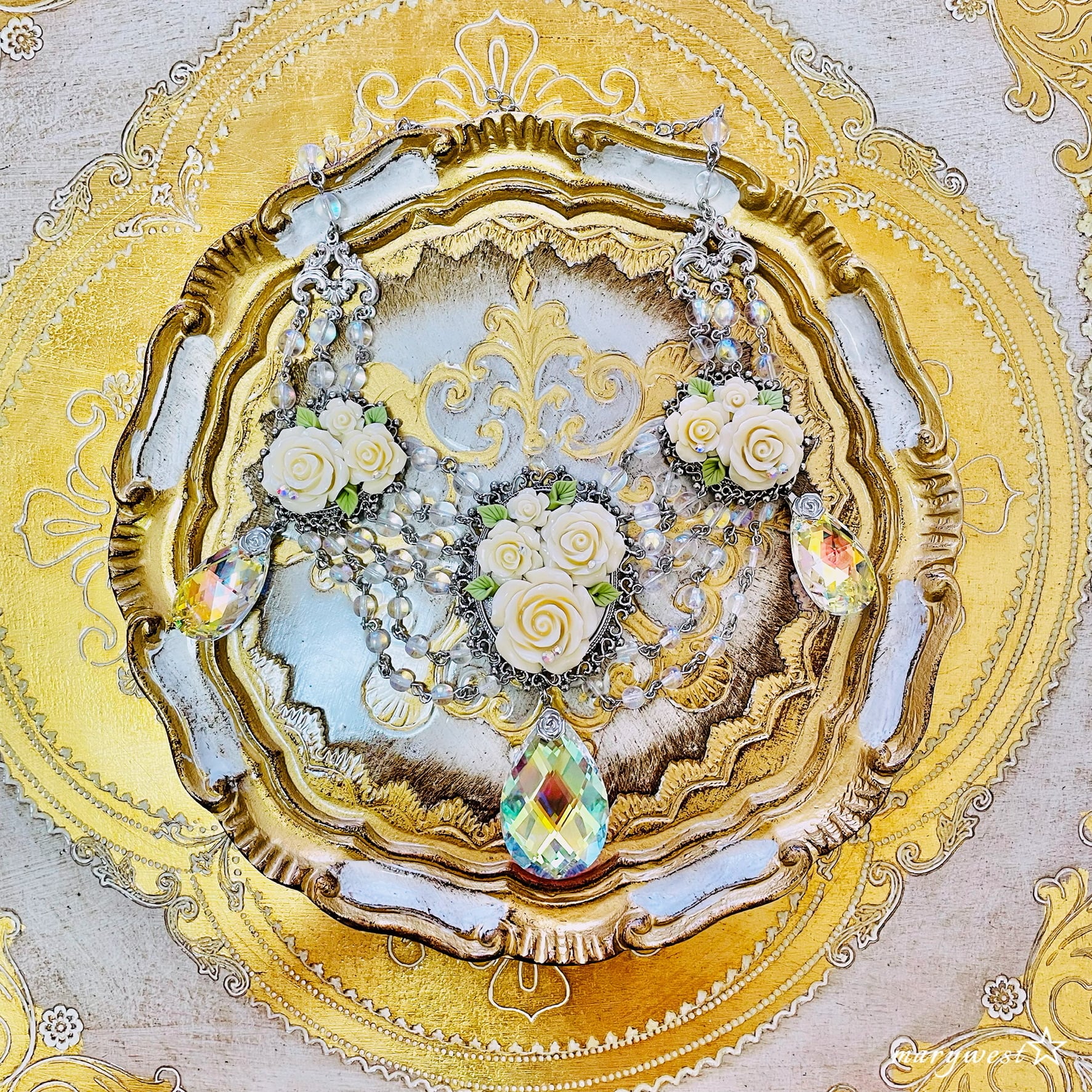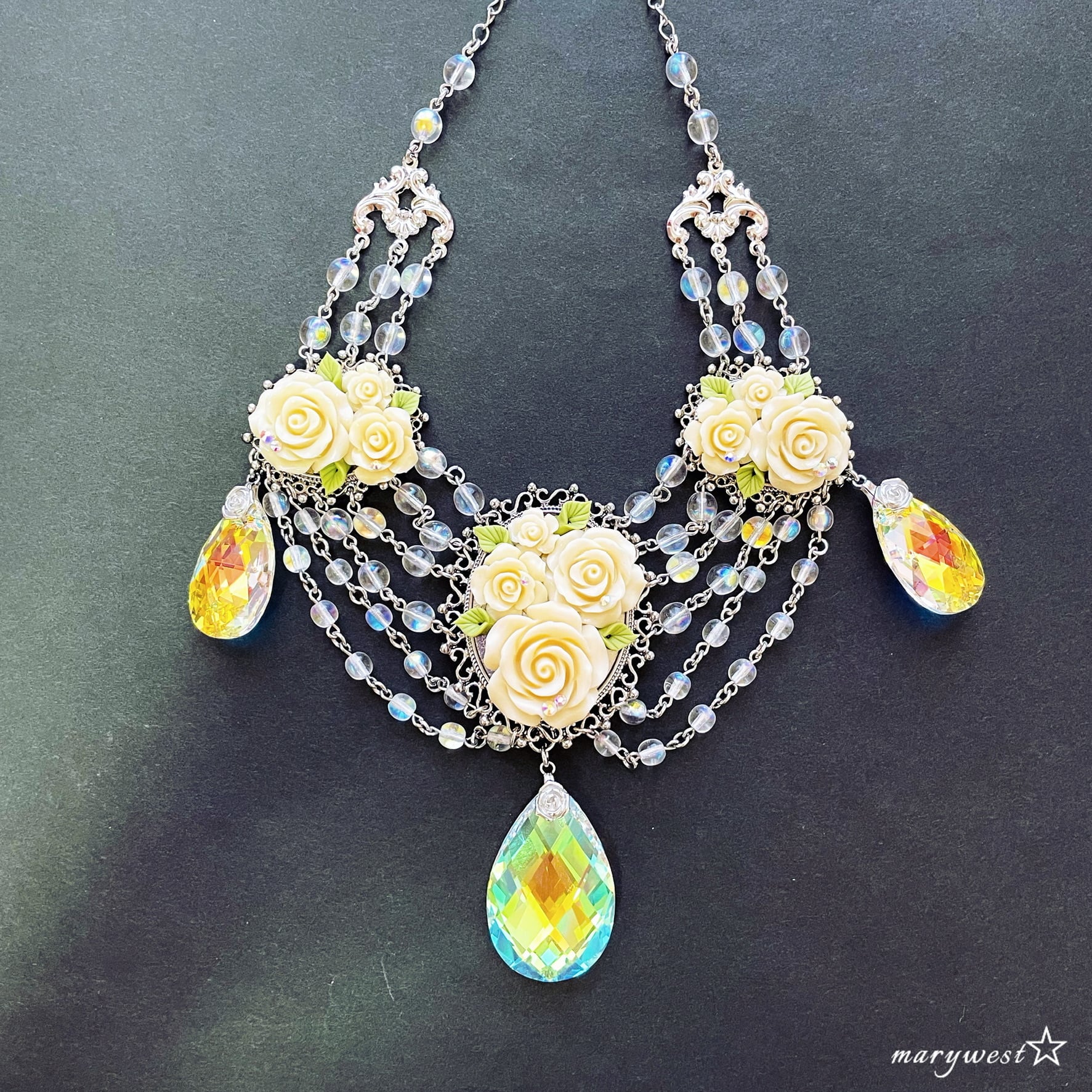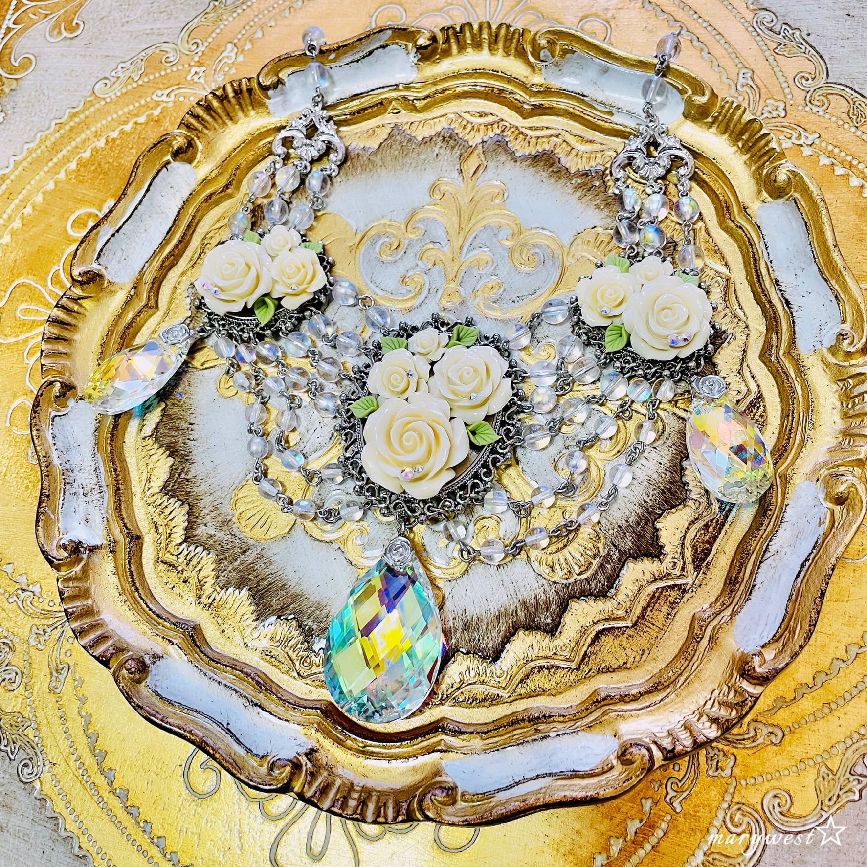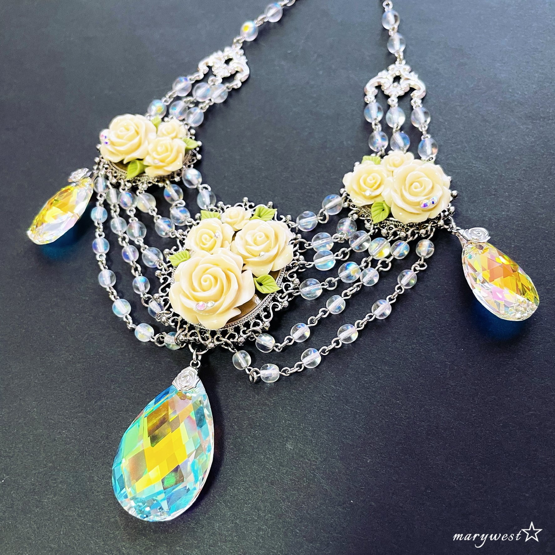 不思議の国のアリスから白の女王をイメージして作成したネックレスです。