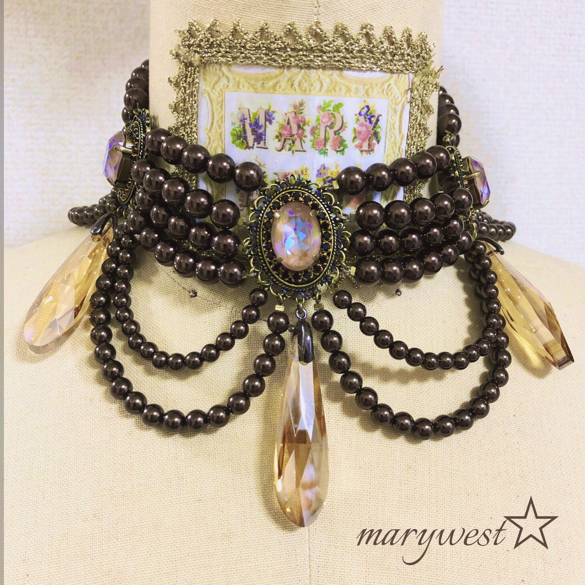 ビターチョコレートの様な色のパールにクリスタル・カプチーノ・ディライトのスワロフスキー、抽出中のコーヒーをキャンディにした様なドロップクリスタル。
