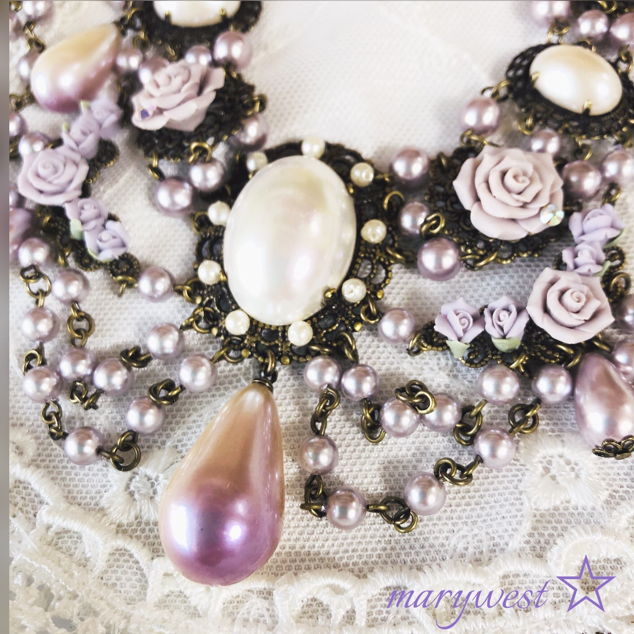 ラベンダーカラーのセラミック&ソフトクレイのバラとパールで制作しました。