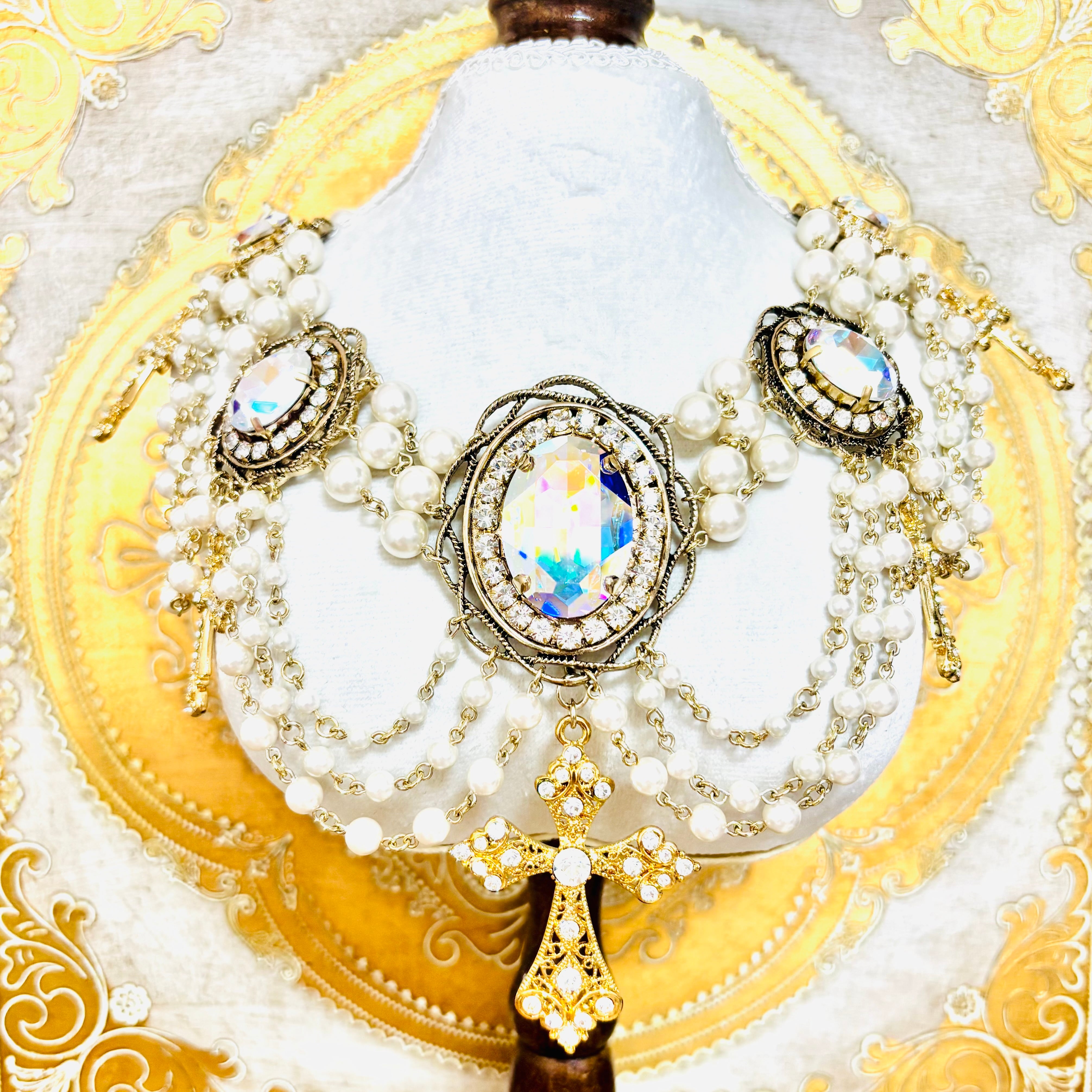 ウェディング ブライダル 披露宴 結婚式 パーティー 社交ダンス ダンス コンサート 舞台 衣装 ドレス プレゼント アクセサリー ハンドメイド ネックレス チョーカー エレガント 上品 パール スワロフスキー