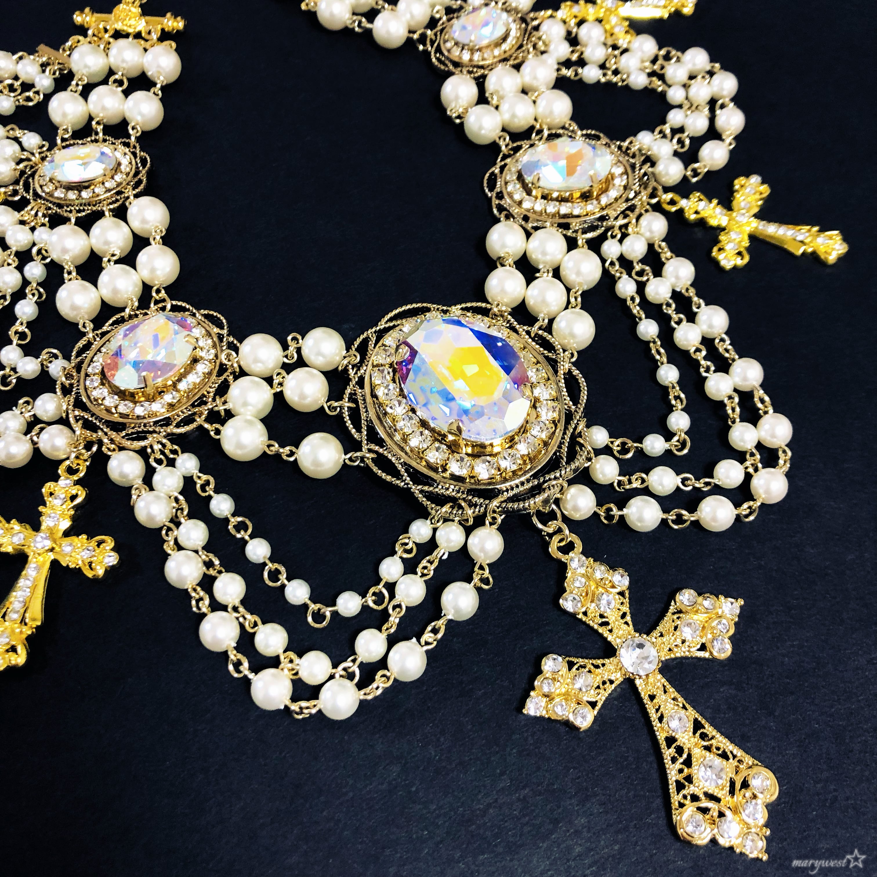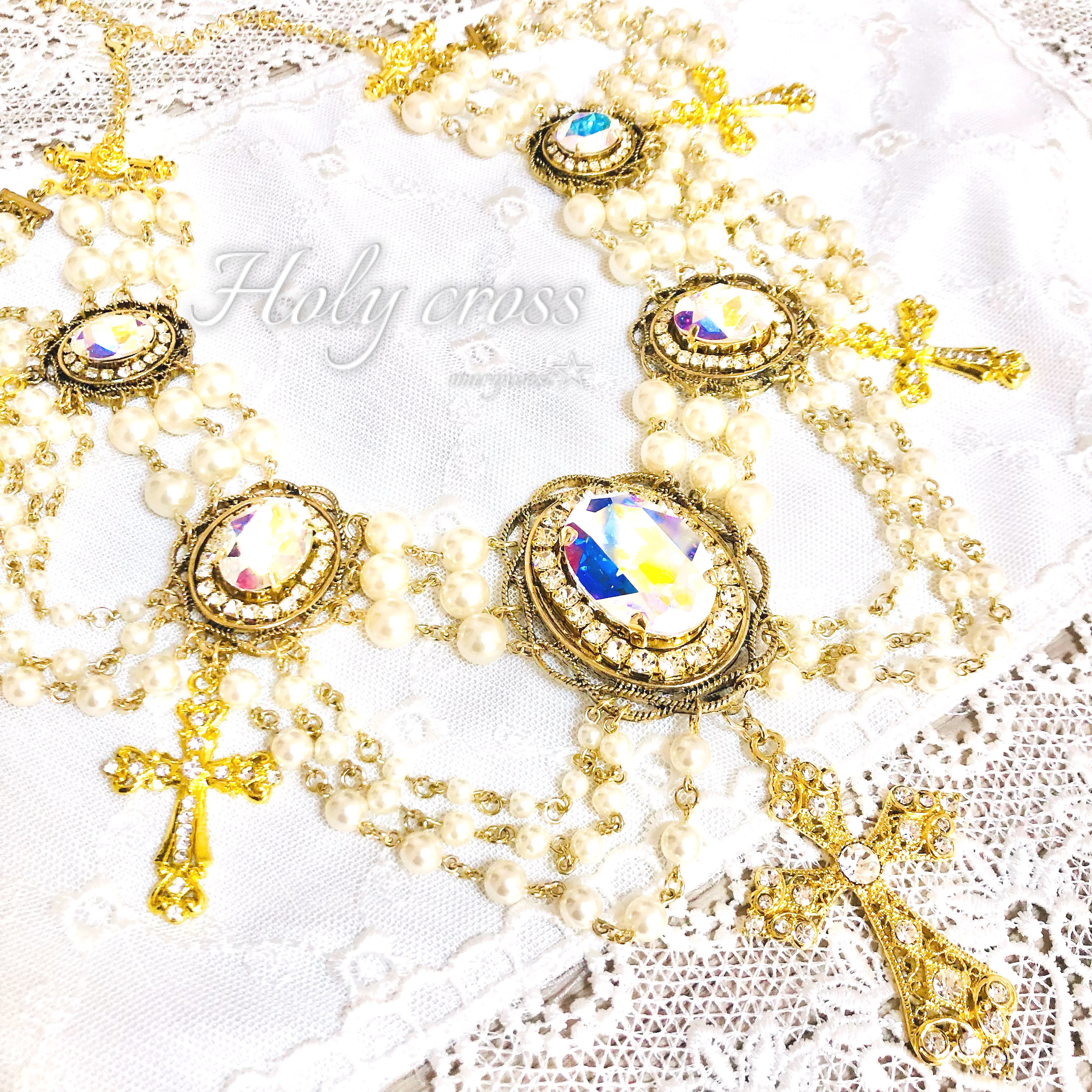 オーロラに輝くクリスタルに十字架モチーフを合わせて制作しました