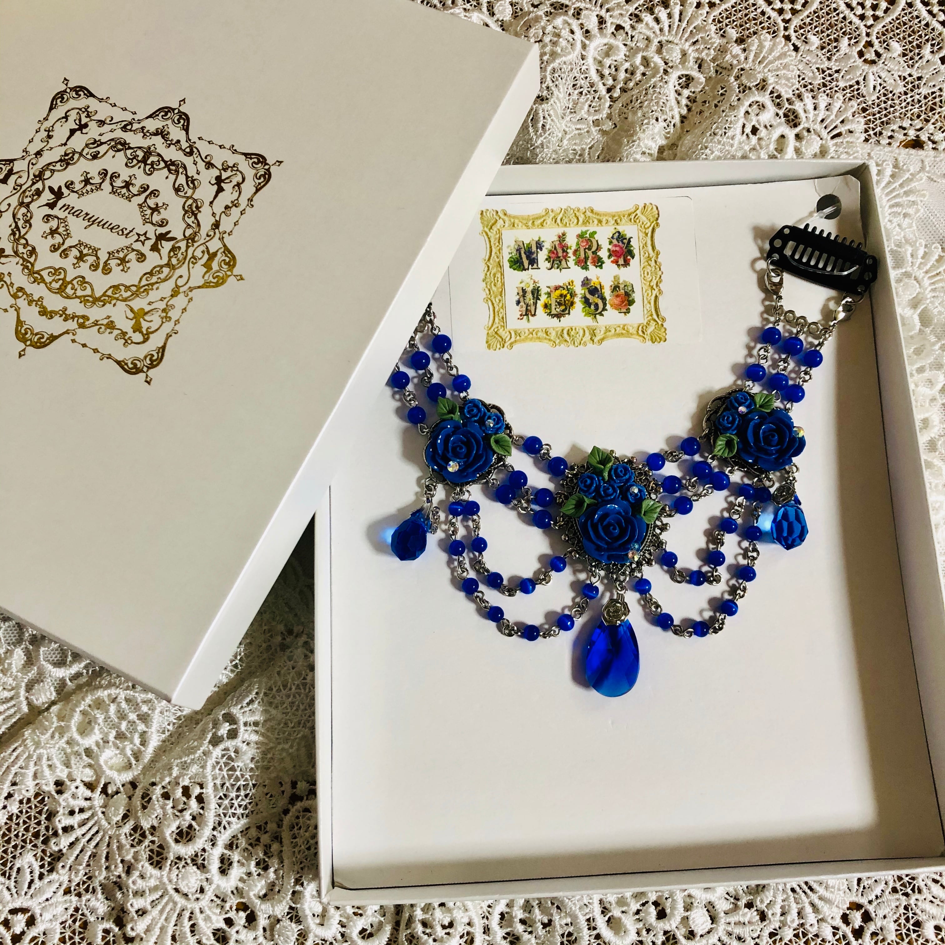 中央はスワロフスキーの目が覚めるような青いクリスタルのマジェスティックブルー。