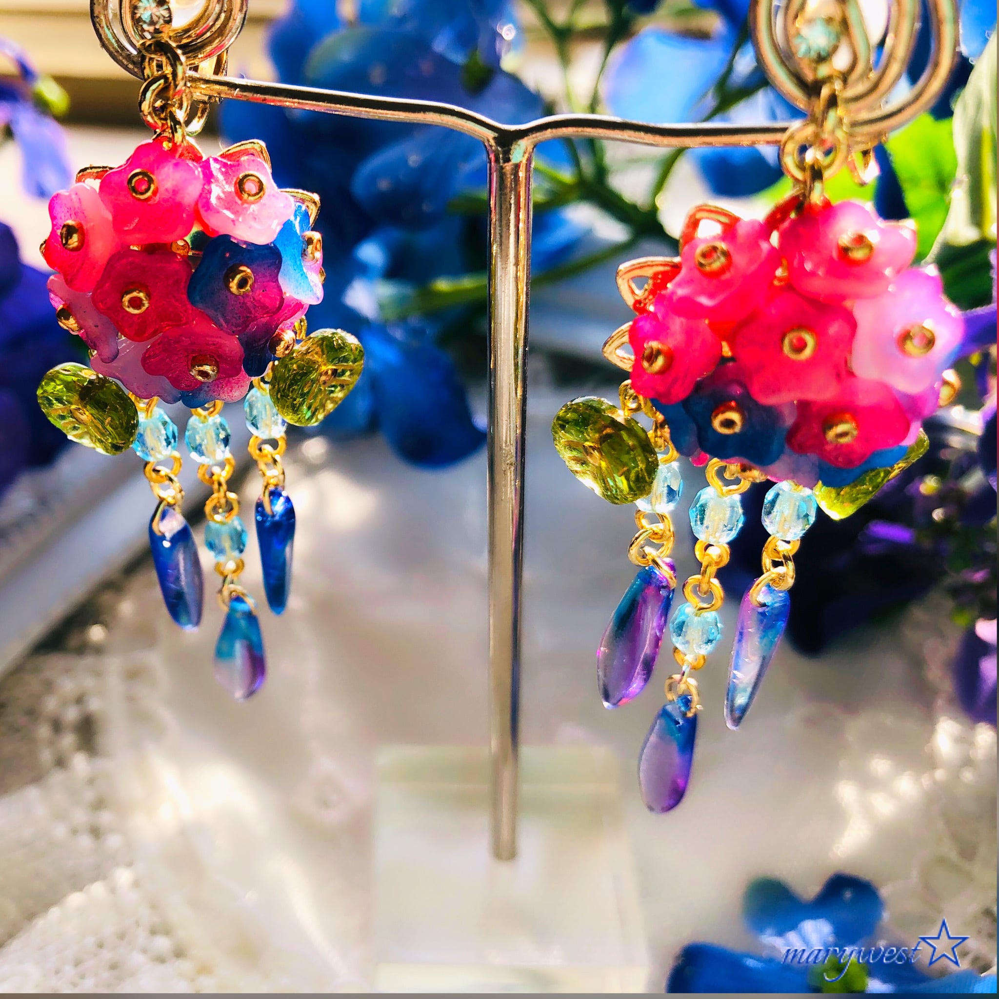 パーティー 撮影 舞台 衣装 ドレス プレゼント アクセサリー ハンドメイド スワロフスキー クリスタル イヤリング ピアス 紫陽花
