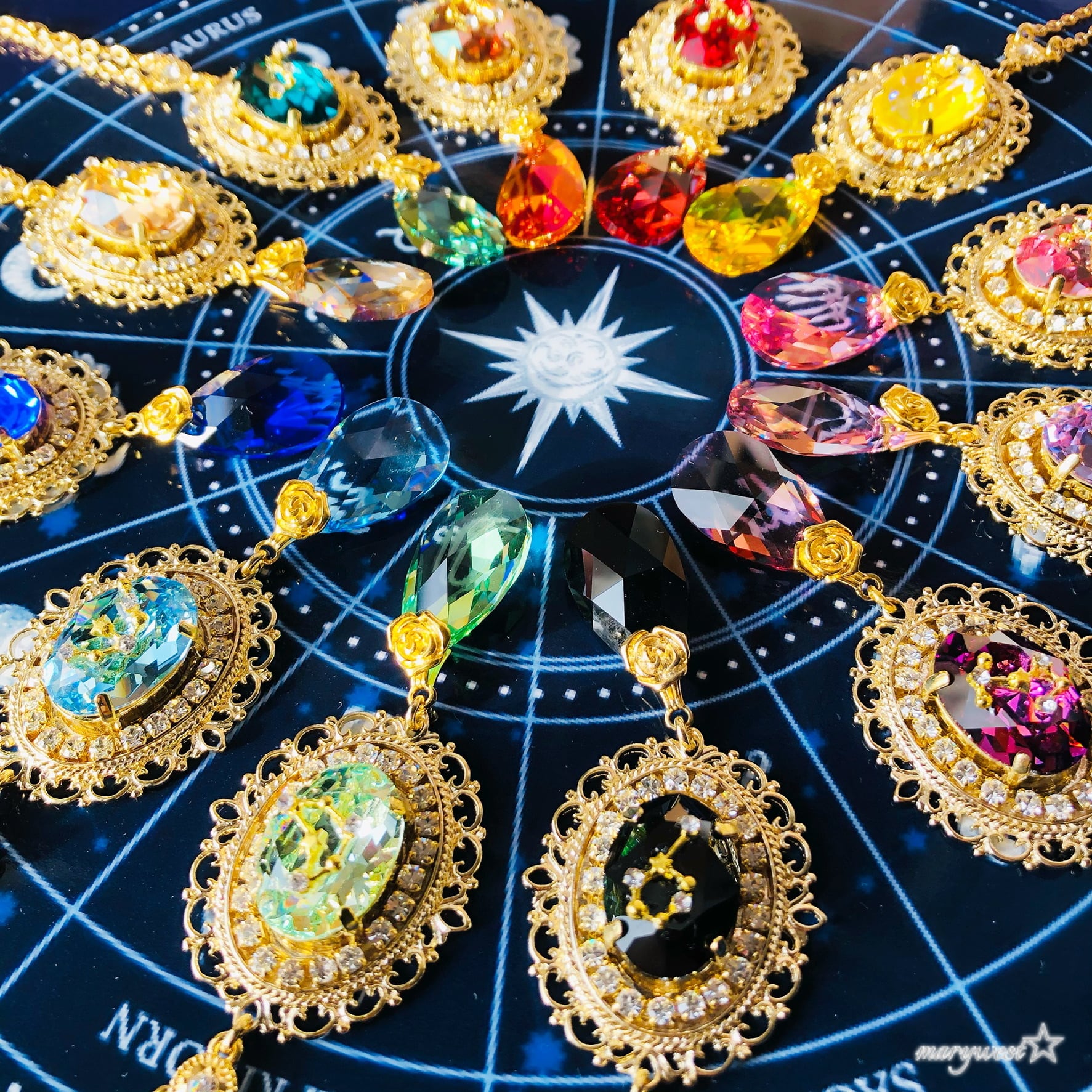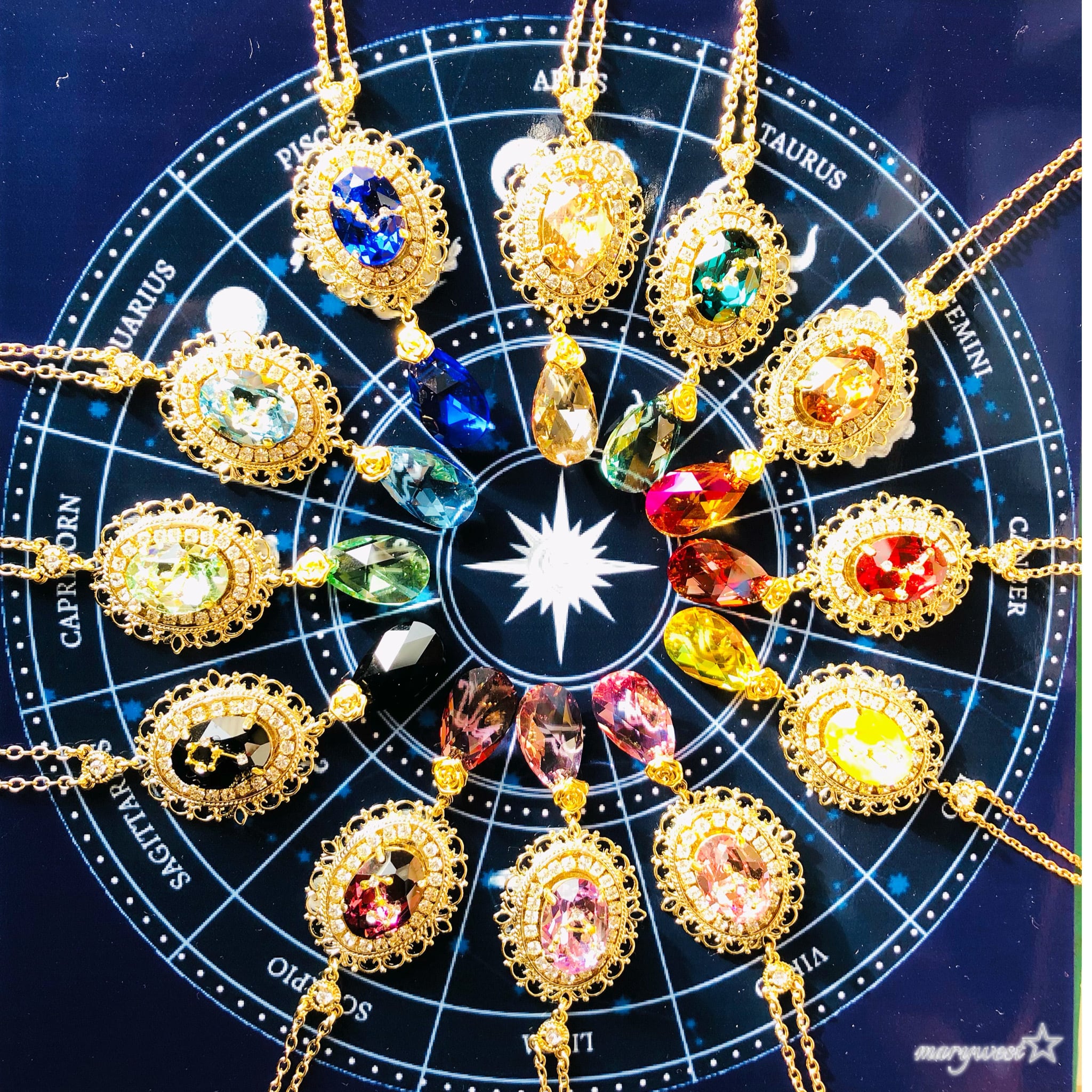 星座のイメージカラーに合わせて組み合わせたオーストリアクリスタル(スワロフスキー)のペンダント