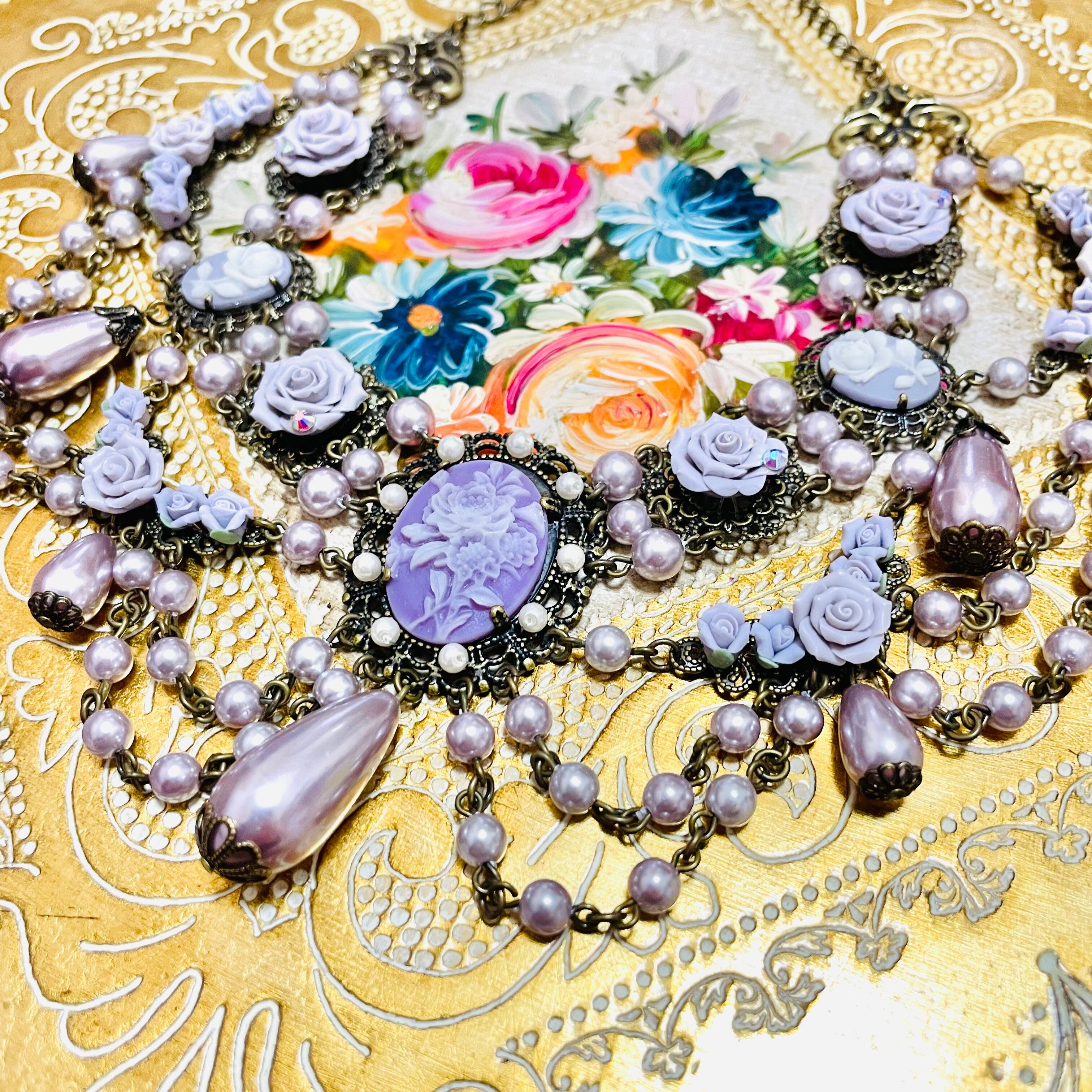 クレイフラワーとセラミックフラワーの薔薇が華やかなネックレスです。