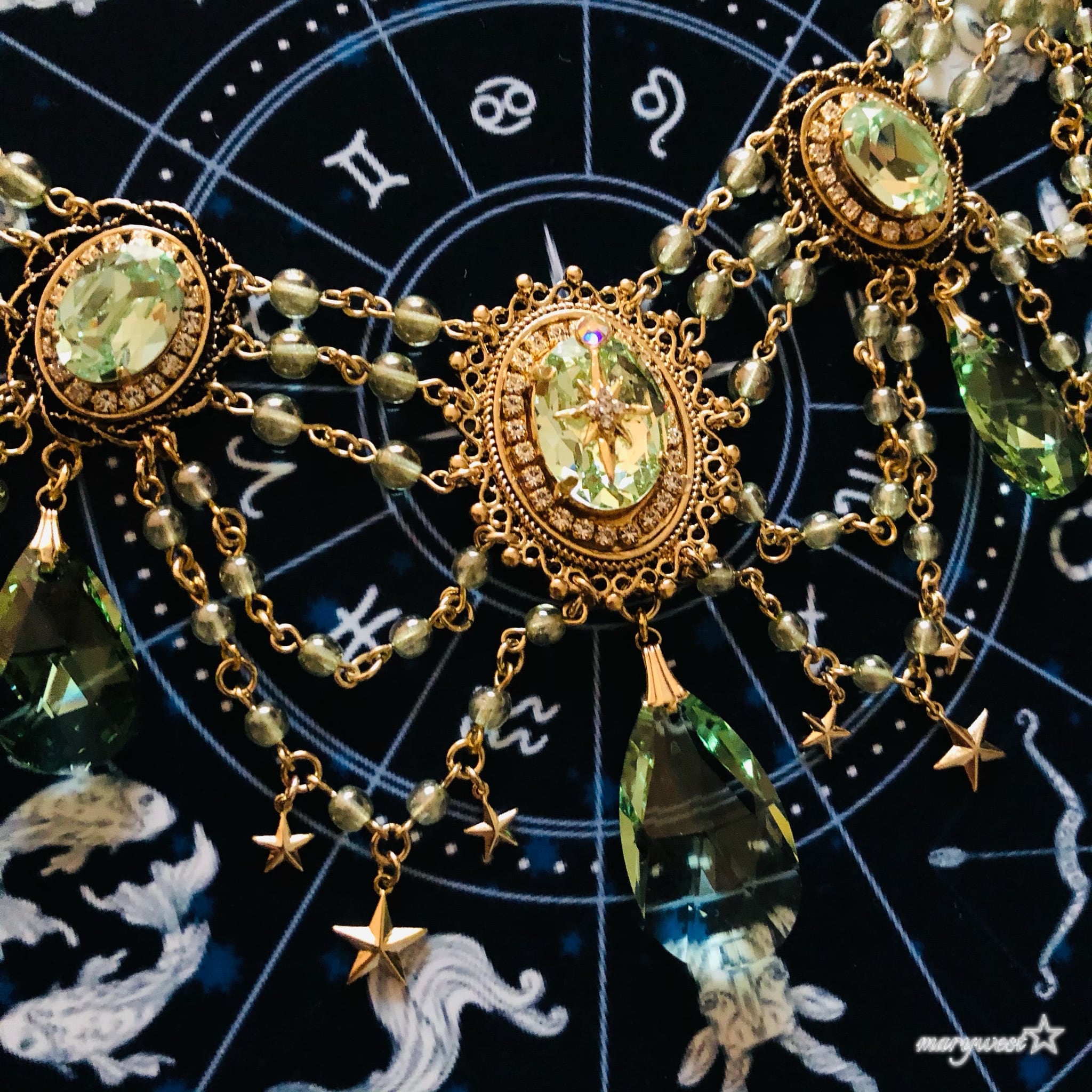 生まれた月の星座に関係なく好きなお色を選んでいただけるように中央のクリスタルには星形パーツを飾りました。
