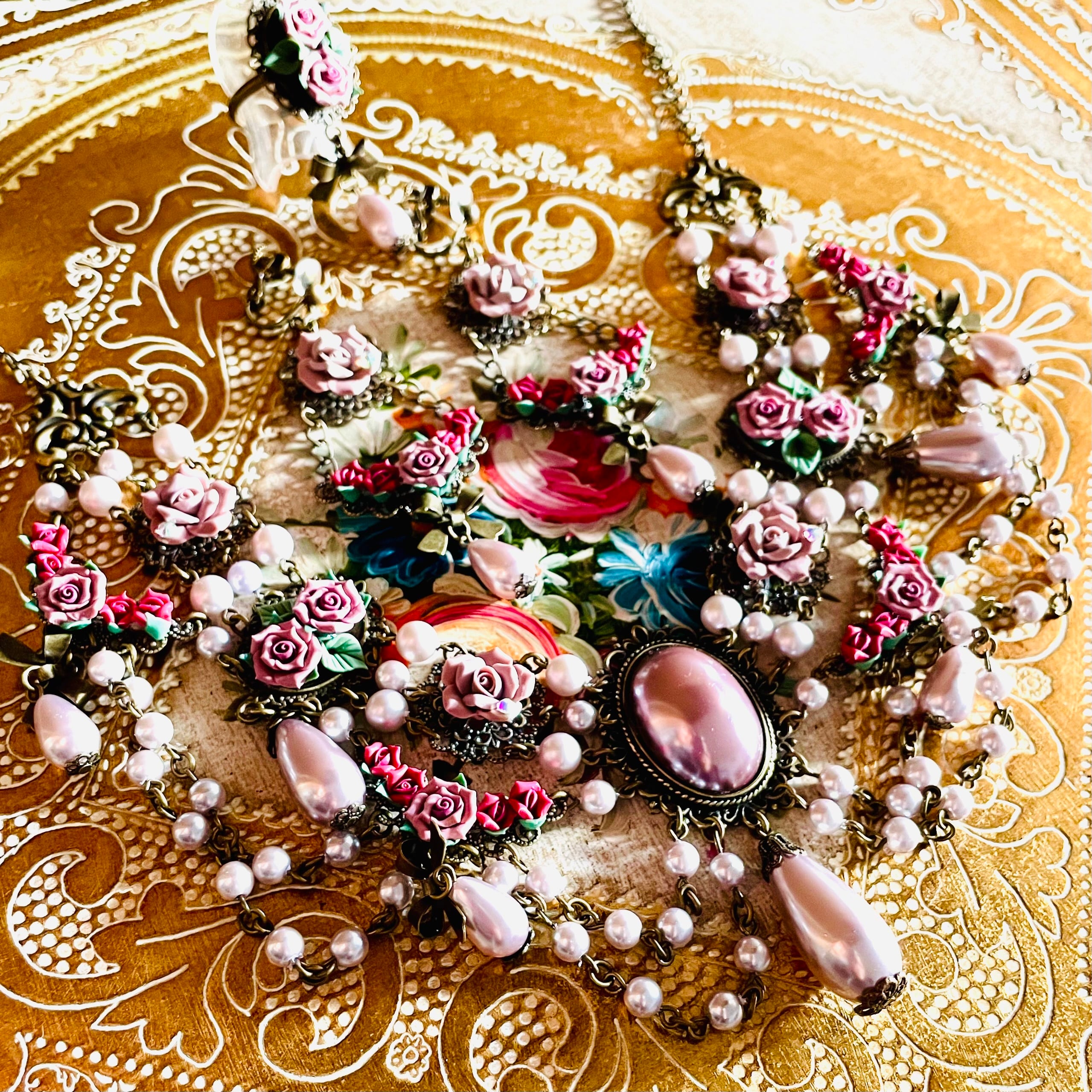 ラベンダーカラーの薔薇が華やかなネックレスです。