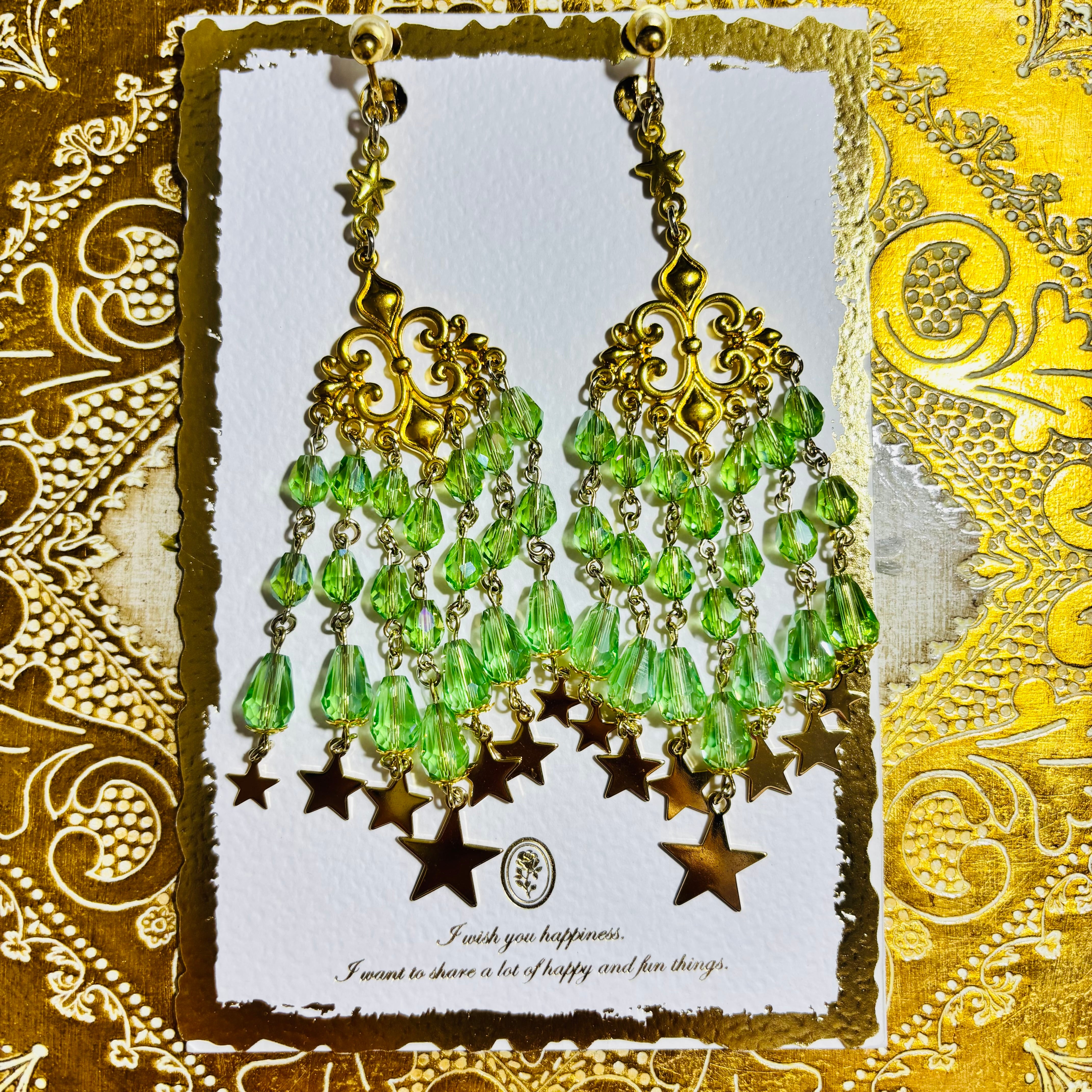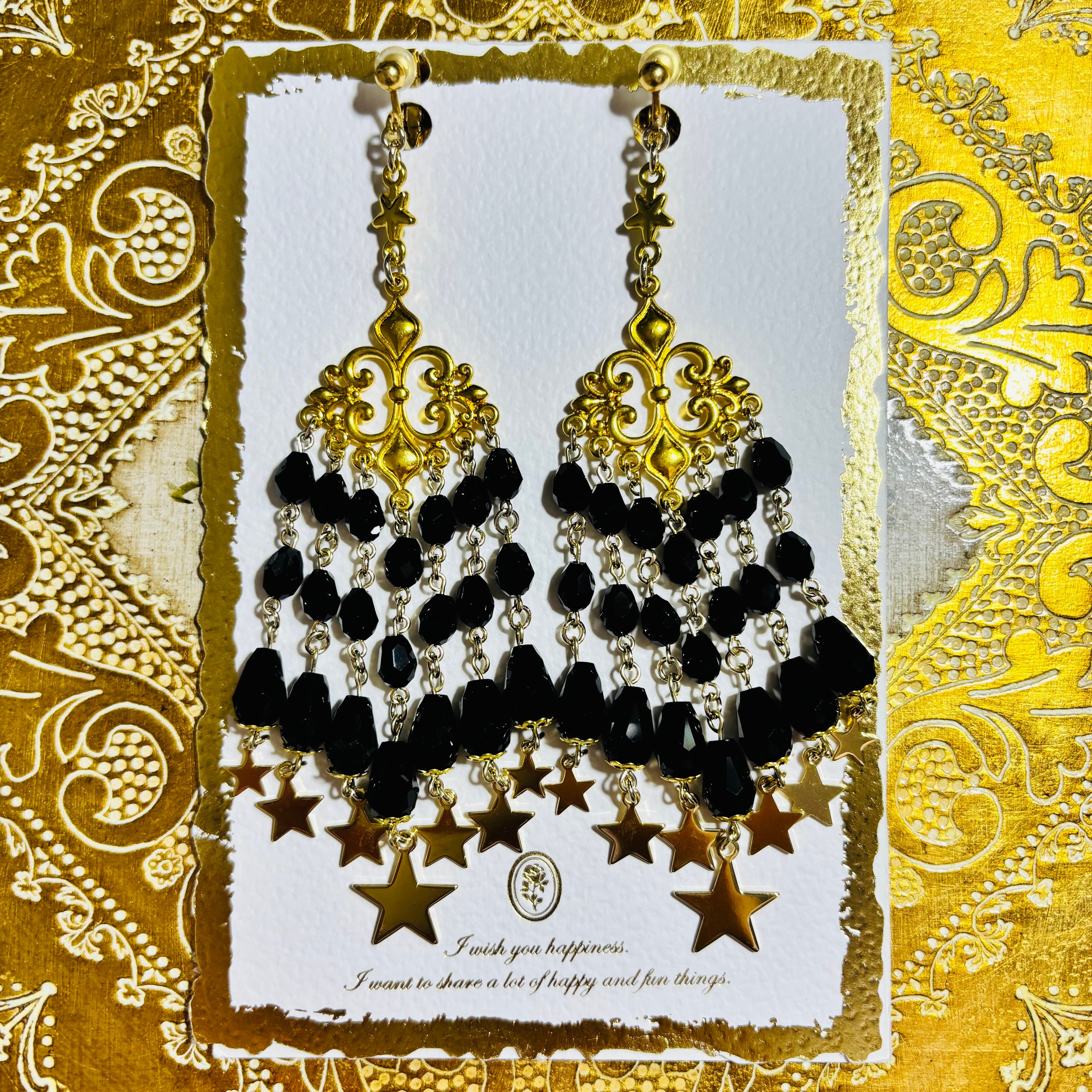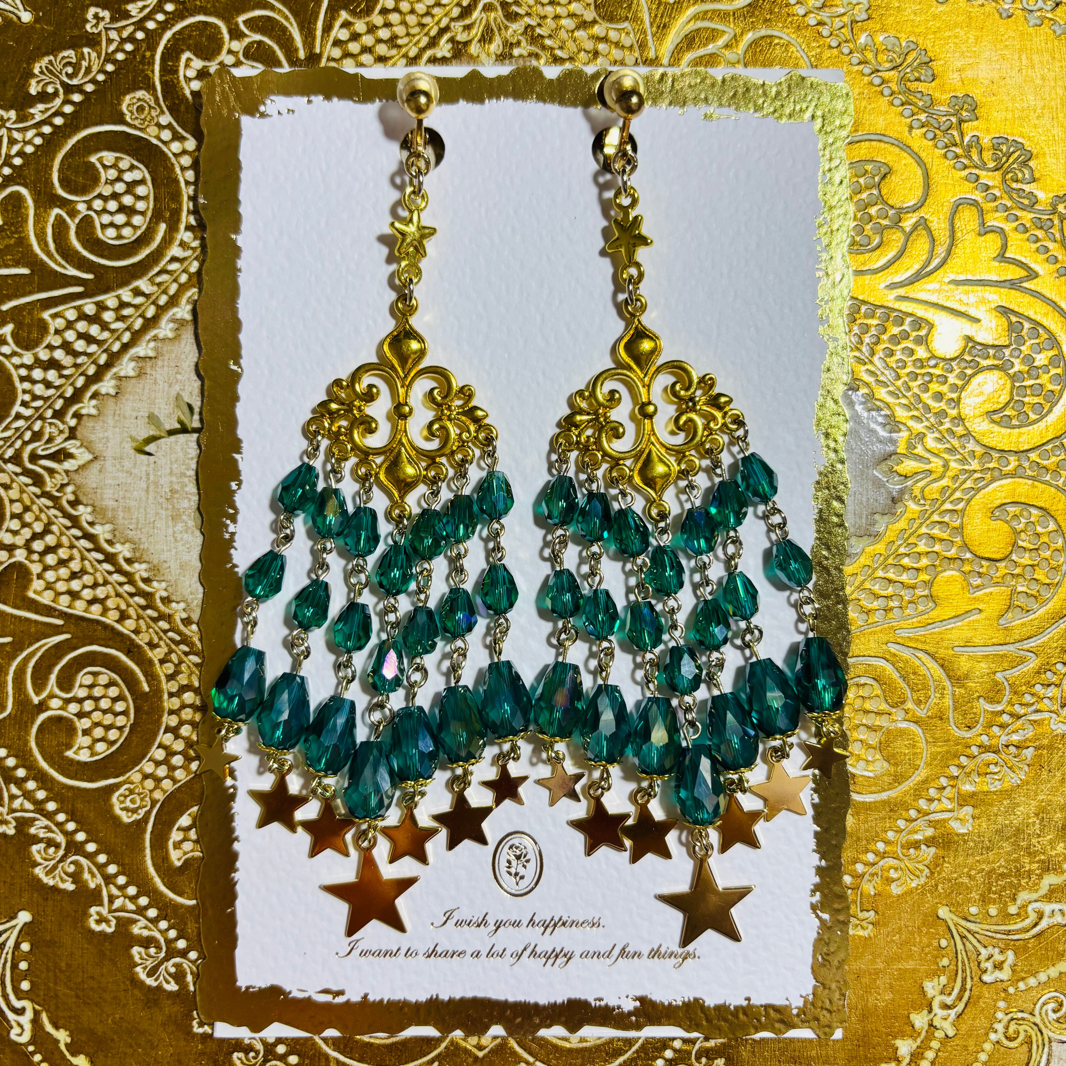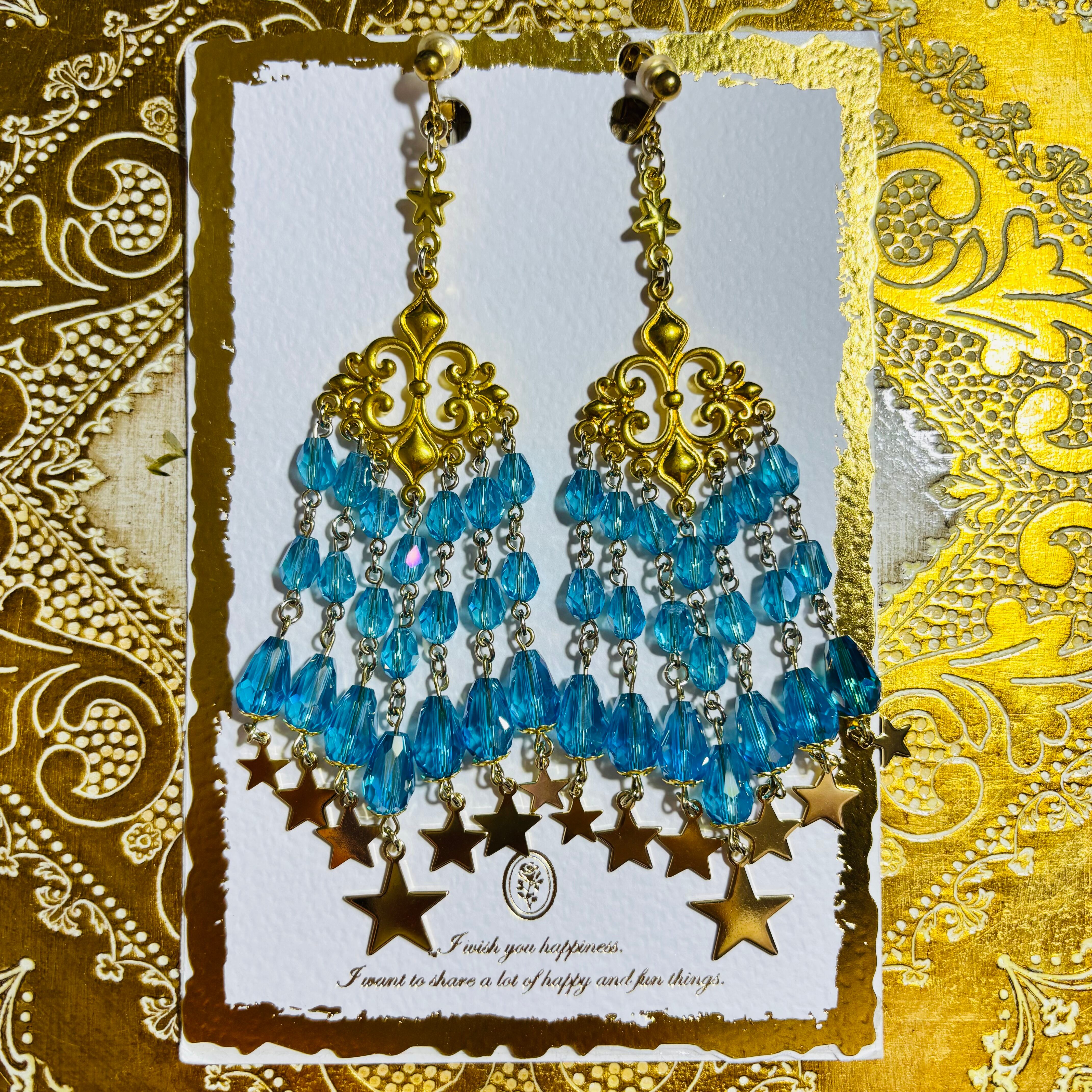 星座のイメージカラーに合わせて組み合わせた流れるビーズと星のイヤリング