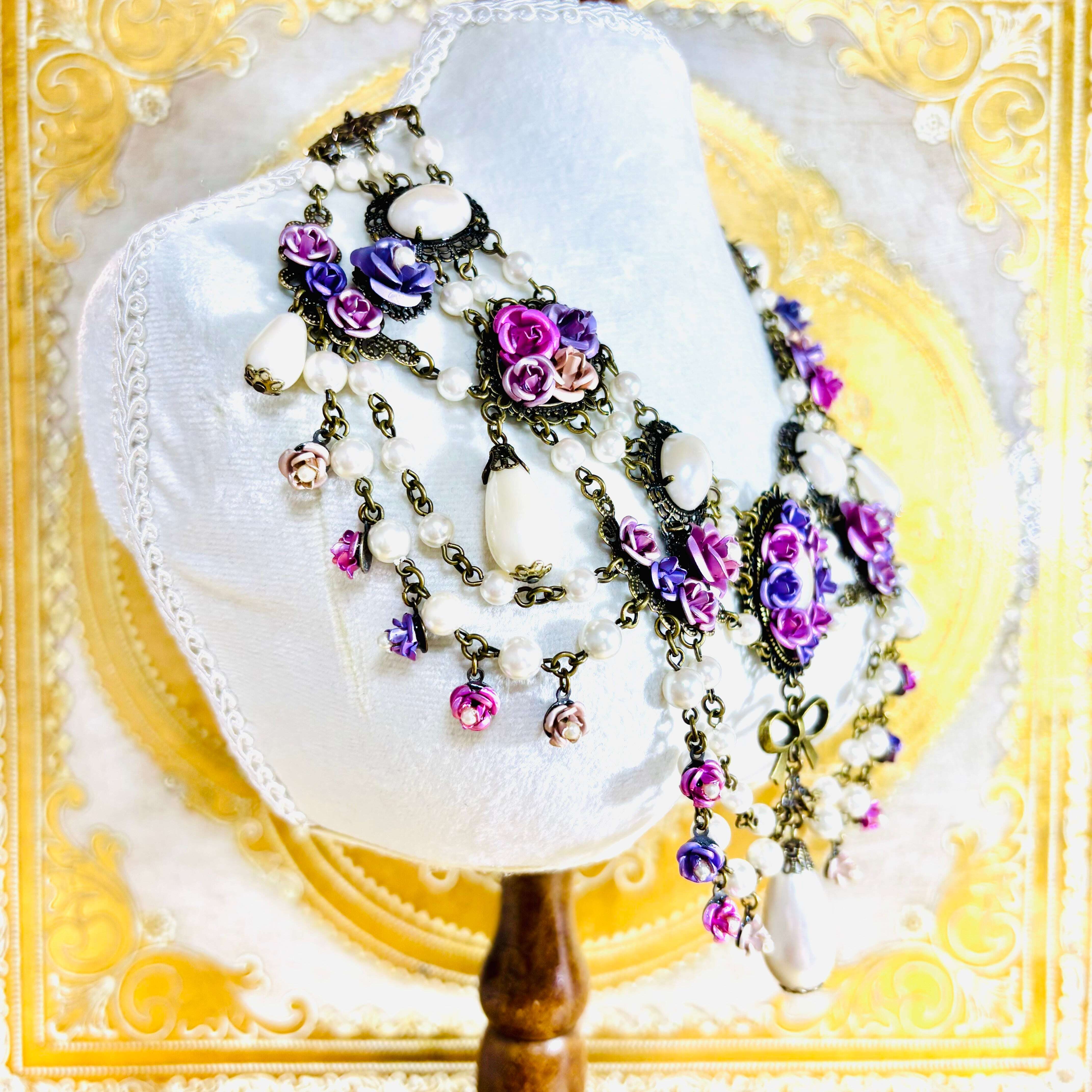 ピンク系ローズとパープル系ローズのグラデーションカラーが美しい繊細なネックレスです